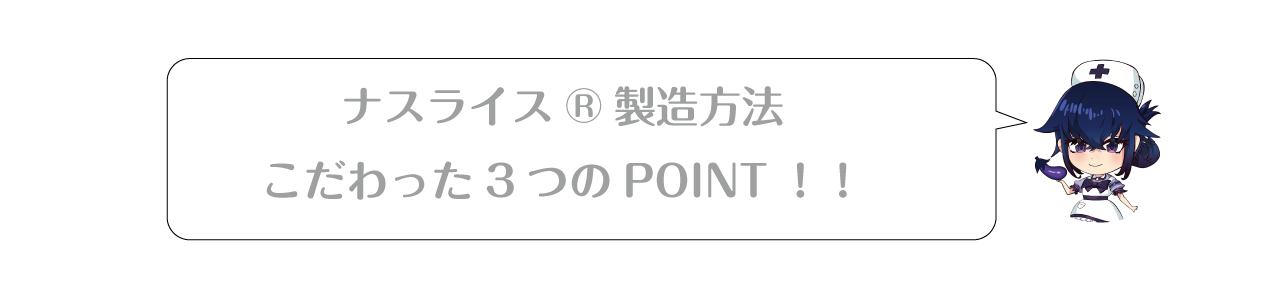2年間、私が自宅で作ってきたこのナスライスのサンプルを『エイブルフーズ』さんに持ち込むと、その高い技術力で具現化してくれました! そして、2022年3月26日、ついにナスライスが『白衣の茄ー子』となって、この度デビューしました!! 成せばナス