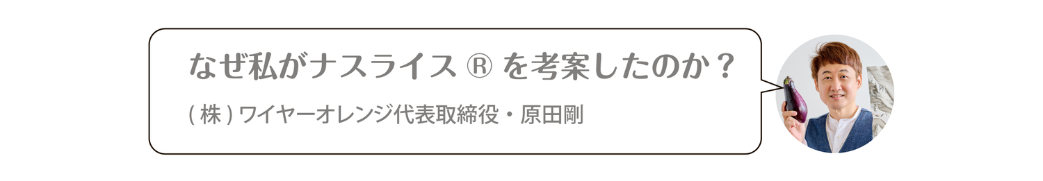 ナスライス・ナス茶考案者/ (株)ワイヤーオレンジ 代表 原田剛(絵本作家)