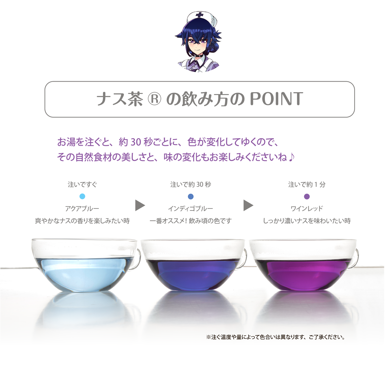 ※ナス茶は2gを水200mlで80℃10分抽出しております。