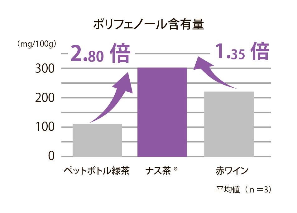 ポリフェノールは緑茶の2.8倍、 赤ワインとほぼ同量。